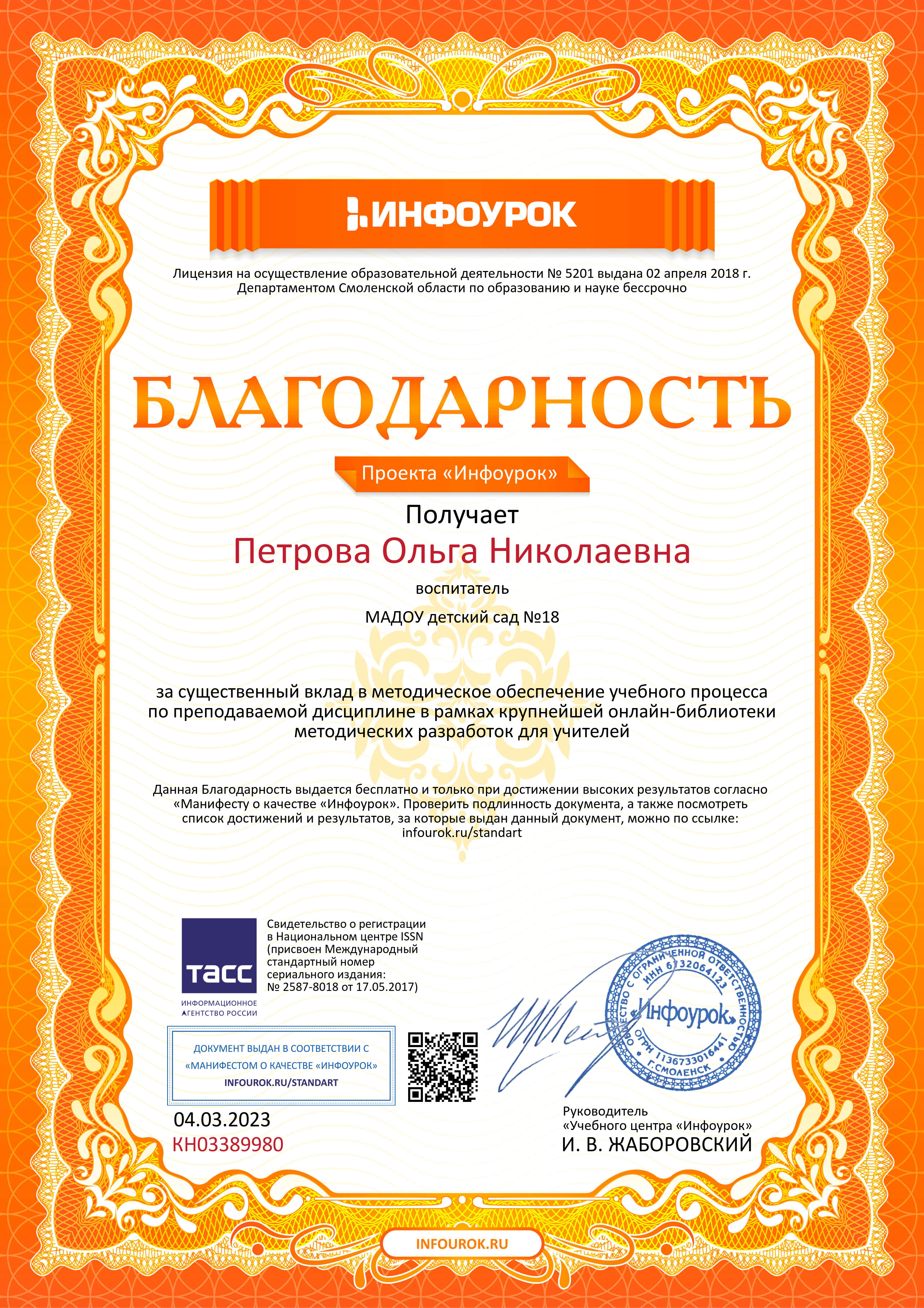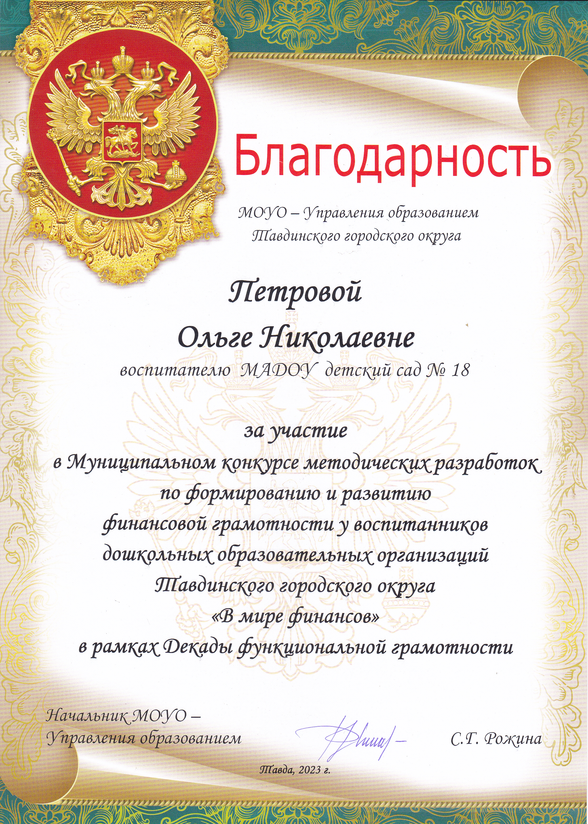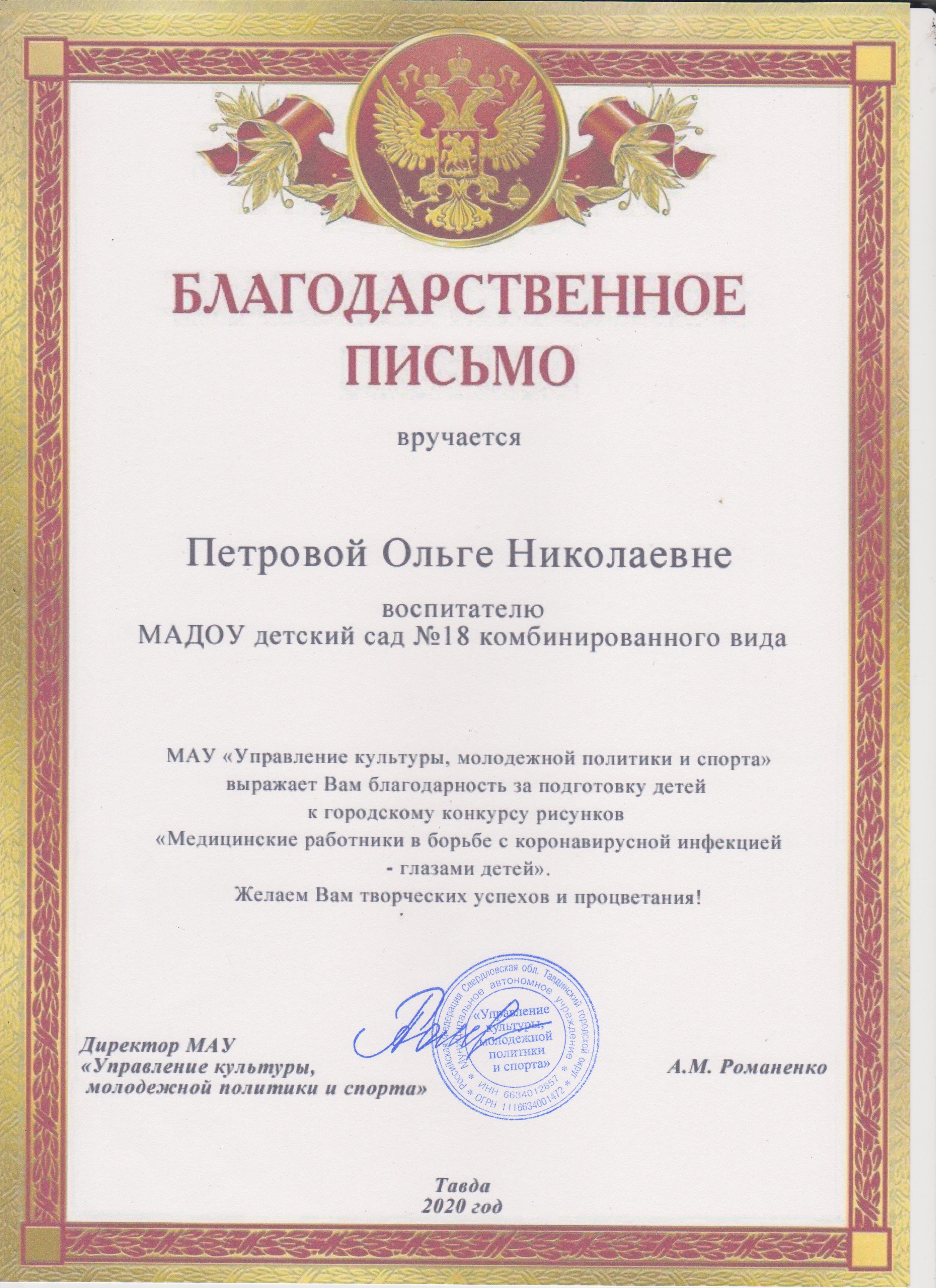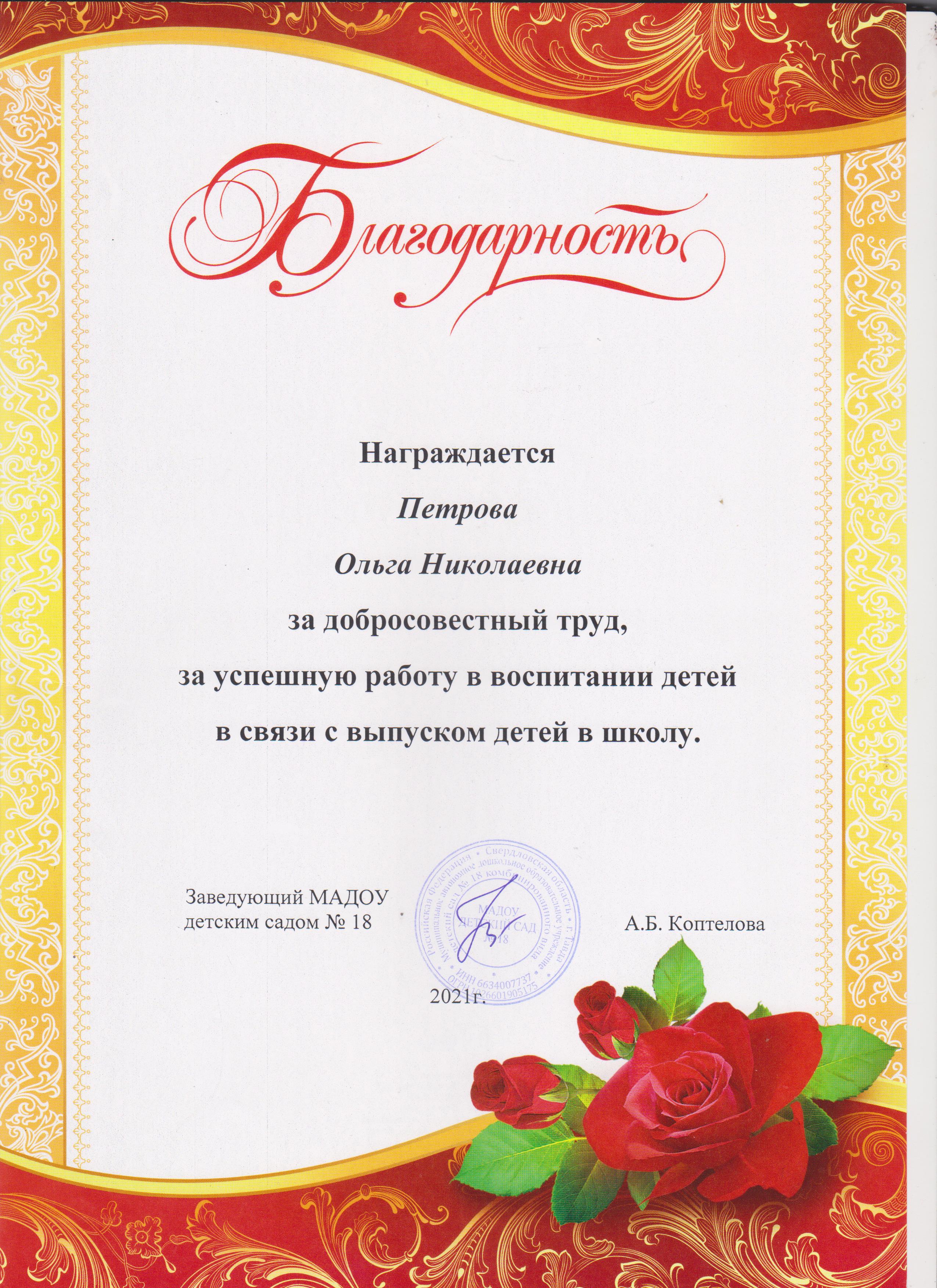 Благодарственное письмо
